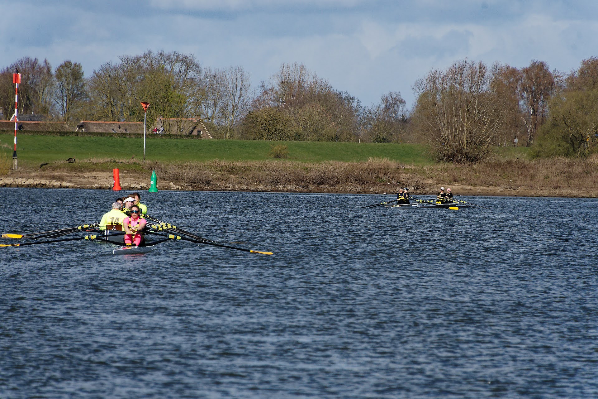 Maar liefst 28 boten streden op zondag 29 maart om de eer over 1250 meter op de hank. Met volop zon, perfecte weersomstandigheden en een vol terras, roeiden de deelnemers onder luid gejoel over de Hank. Dit was de laatste wedstrijd van de DavO van dit winterseizoen.